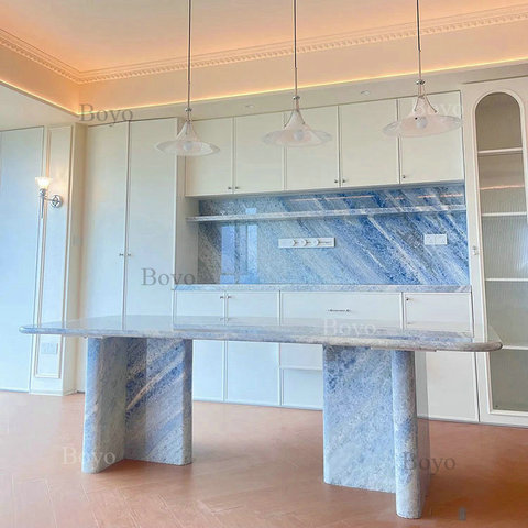 Op Maat Gemaakte Interieurontwerp Azul Calciet Kristalblauw Kwartsiet Marmeren Eettafel Meubels