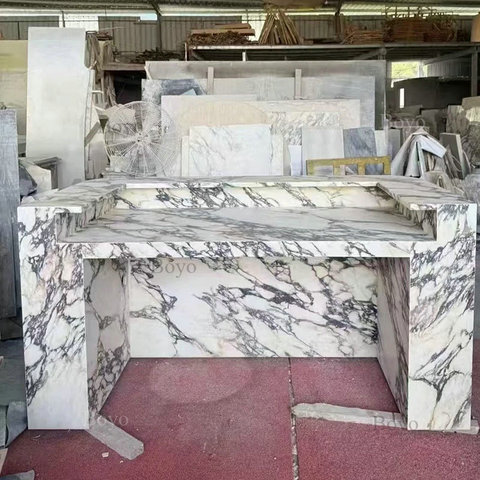 우아한 카운터 중국어 Calacatta 비올라 대리석 럭셔리 디자인 리셉션 데스크 프론트 테이블 리셉션 카운터 레스토랑