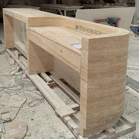 BYT002 현대 L 형 2 인 리셉션 테이블 오피스 호텔을위한 로마 석회화 천연석 디자인